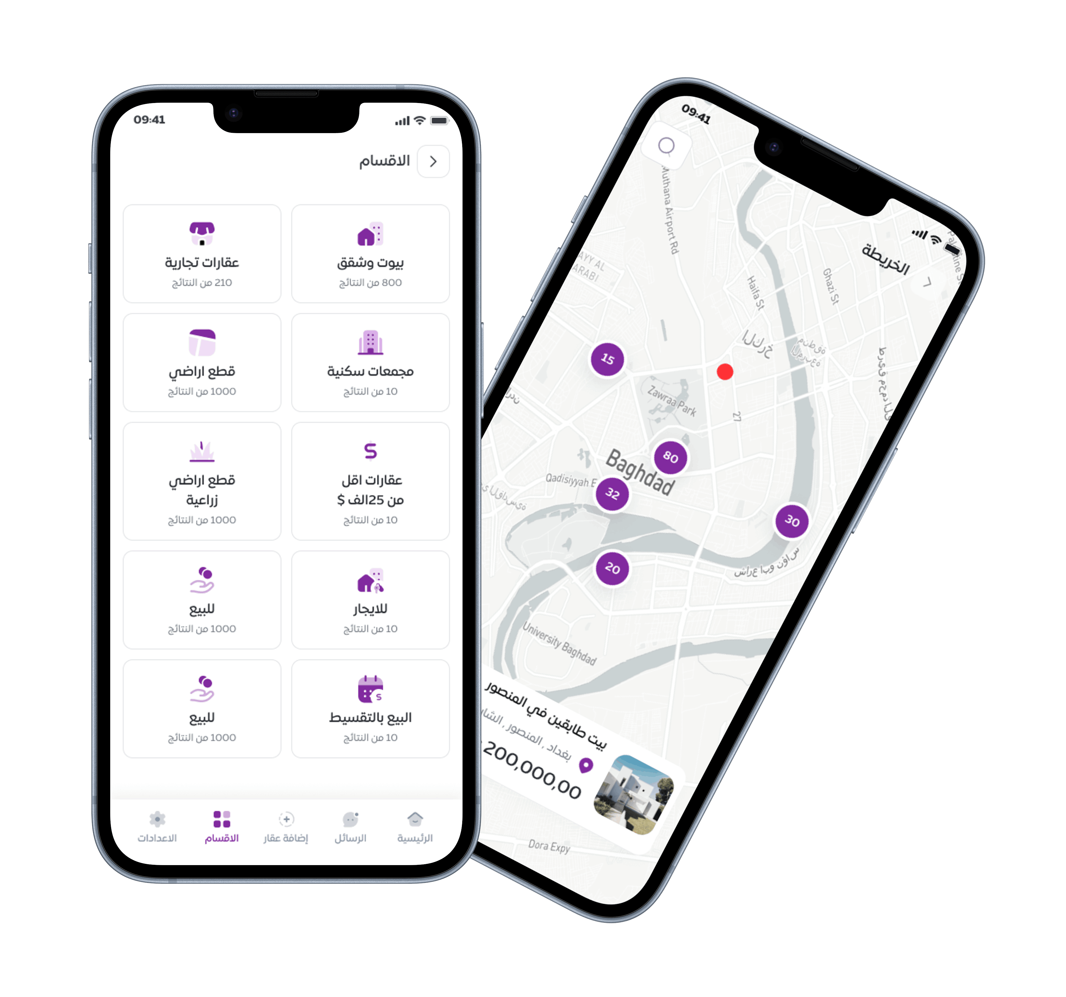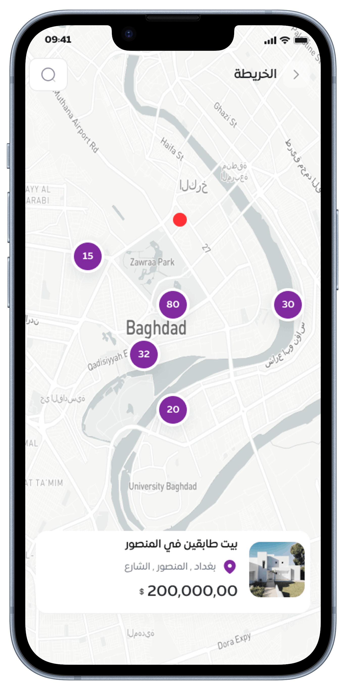 ابحث عن العقار في اي محافظة من خلال استخدام خارطة التطبيق واستكشف الخدمات المحيطة بالعقار .